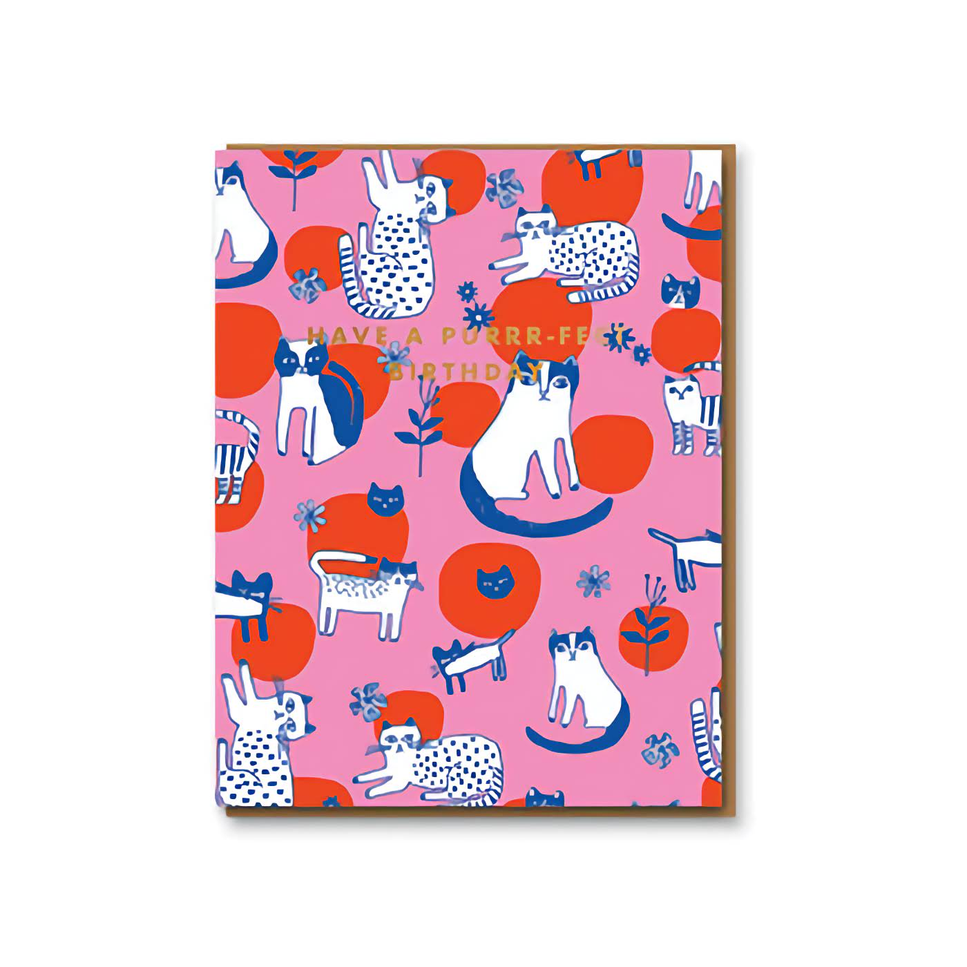 A fun birthday card for cat lovers, hand letterpressed on eco-friendly paper. Designed by Oliver Bonas in the UK.