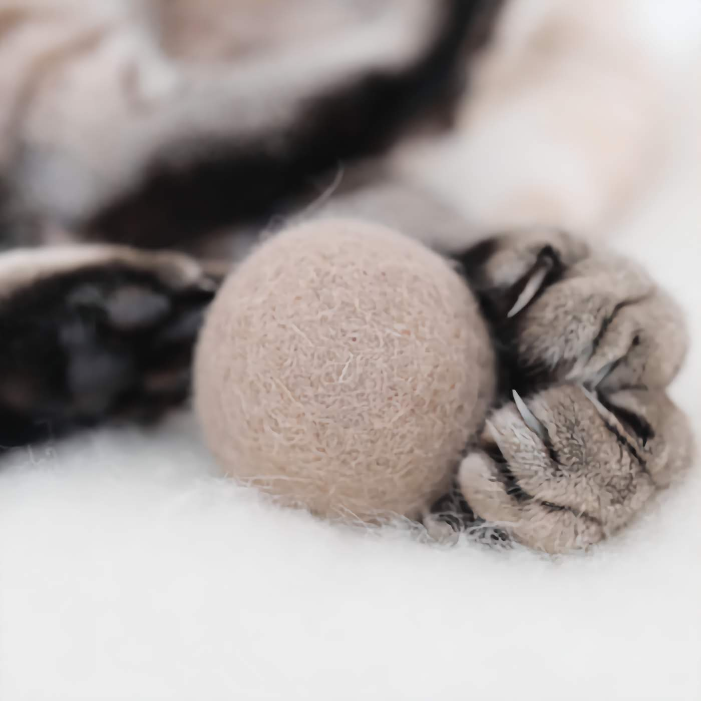 Globo cat ball toys are made by hand with great care and attention to detail. Each cat toy is made from 100% natural felt wool from New Zealand. The special size and carefully chosen material allows your cat to grab the play balls with its claws and encourage it to chase, catch and play.